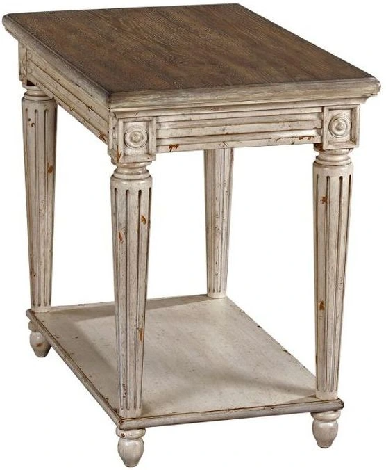 Southbury chairside table is crafted of wire brushed oak veneer and hardwood finished with a glaze over antiqued chipped paint to create the time worn look. Casual European country homes are the inspiration and working with different textures and finishes create a look and feel of old-world treasures.Read More