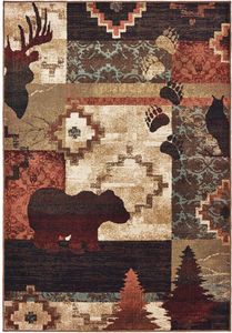 The collection of Woodlands shows traditional forest icons and charming motifs of the lodge. Rich colors of rust and berry, smooth sky blue and sage green complement smooth black, dark brown, gold and ivory neutral colors. Woodlands is sure to add a comfortable warmth to any rustic environment, machine-woven in 100% polypropylene.